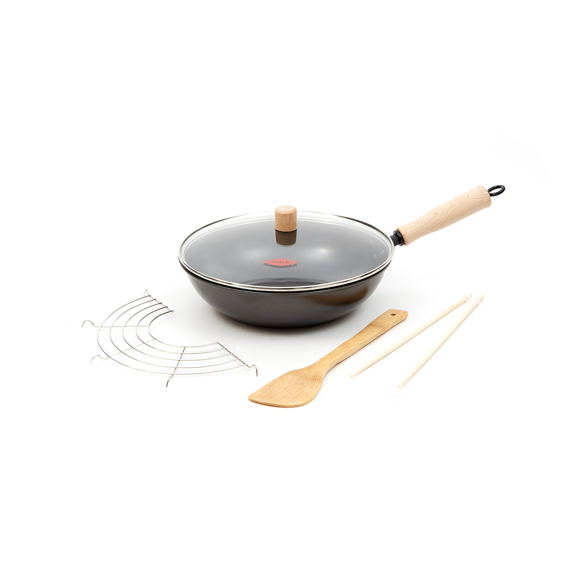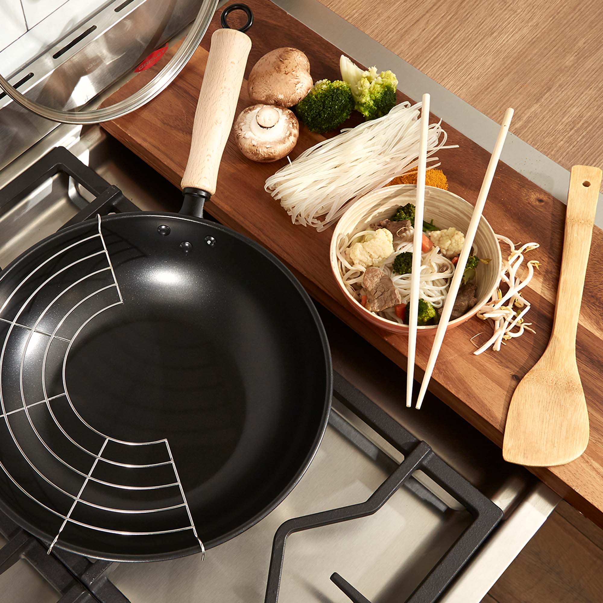 1 wok de hierro con tapa de vidrio